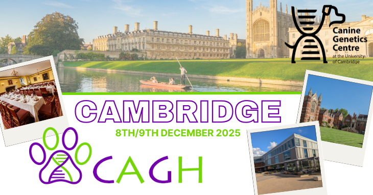 Scientific research is all about discovering new things and then sharing those ideas with others! The field of companion animal genetic health research is small but incredibly supportive, and last week we held our own “Companion Animal Genetic Health (CAGH)” conference in Cambridge, where we welcomed scientists from the UK, mainland Europe and even the USA.