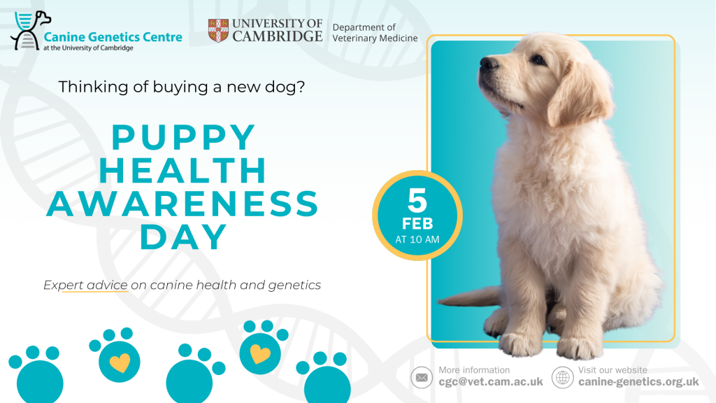 The Canine Genetics Centre (CGC) are very excited to be holding an educational day for members of the public who are thinking about buying a new puppy, on Thursday 5th February 2026, at the University of Cambridge’s West Hub facility.