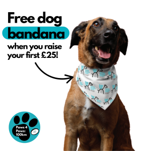 When you sign up, create your fundraising page on JustGiving, and raise your first £25, we’ll send you a free dog bandana to wear during your challenge!
